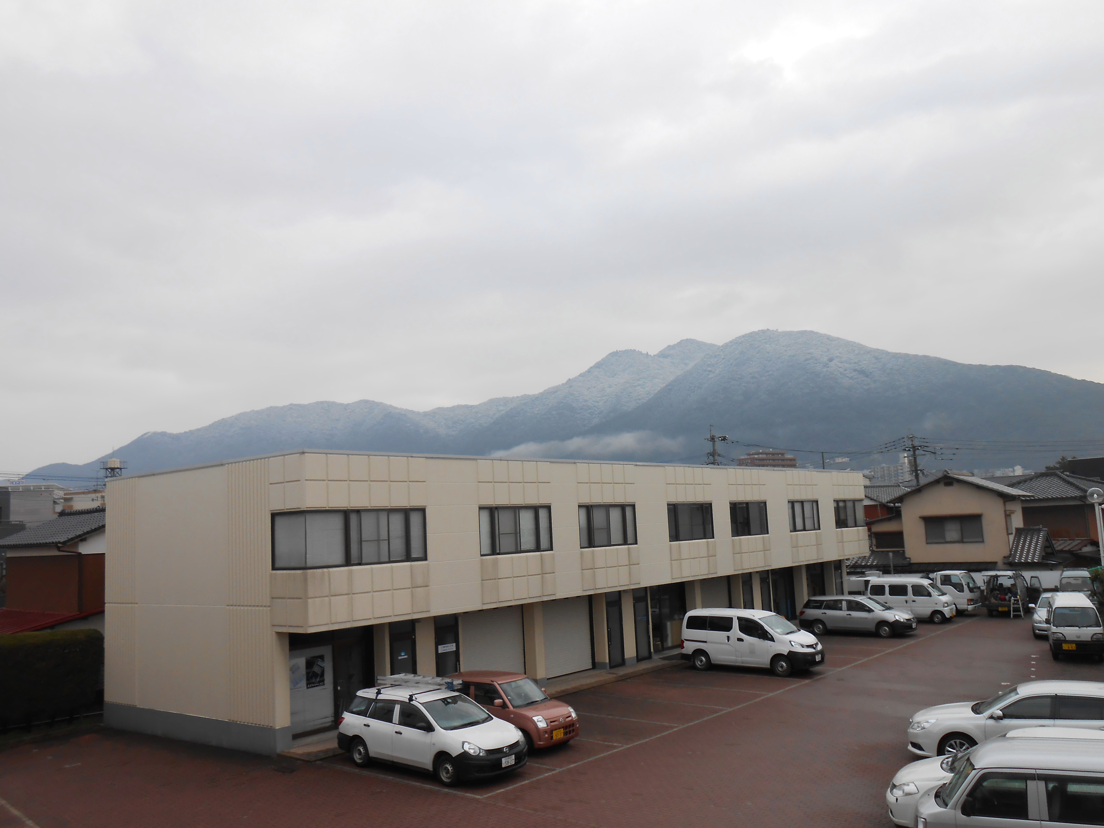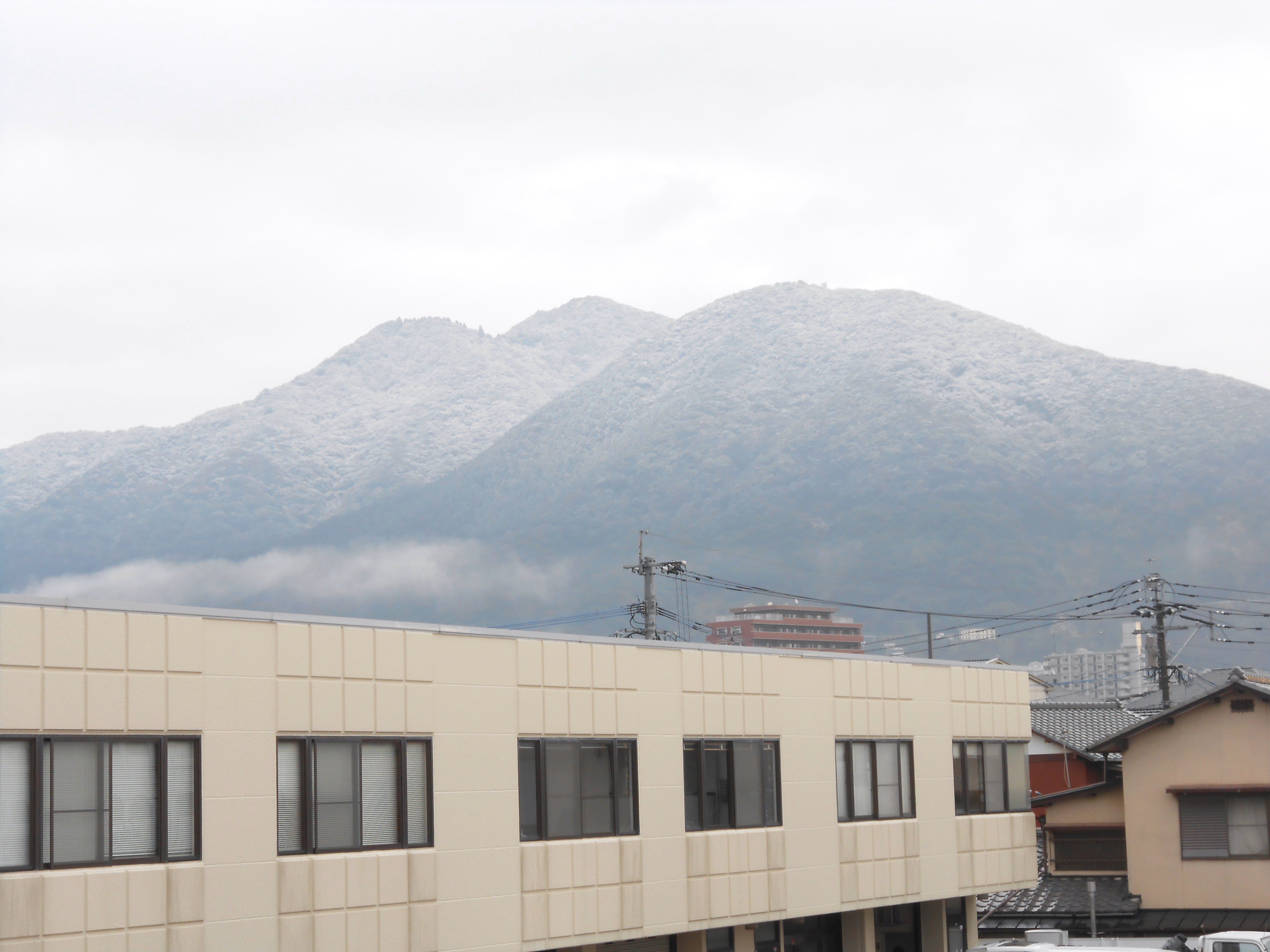 昨日から雪が降り、朝には山が雪化粧していました。