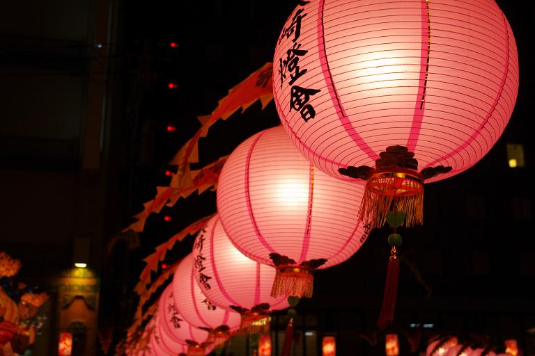 長崎の中華街から市内の中心部に、色々なランタン(中国提灯)が飾られ町を