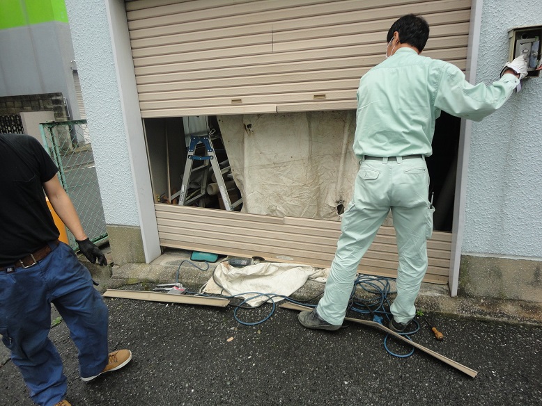 続いてシャッター交換(スラット・座板・巻取りシャフト)を3カ所。↓