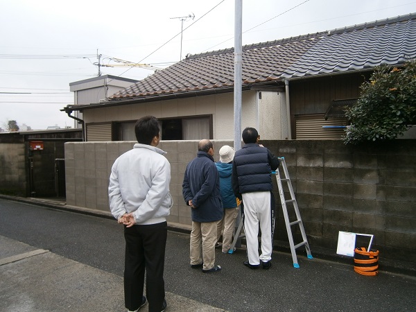 ↑近隣住人の方々と土地家屋調査士さんと境界測量の立会い。