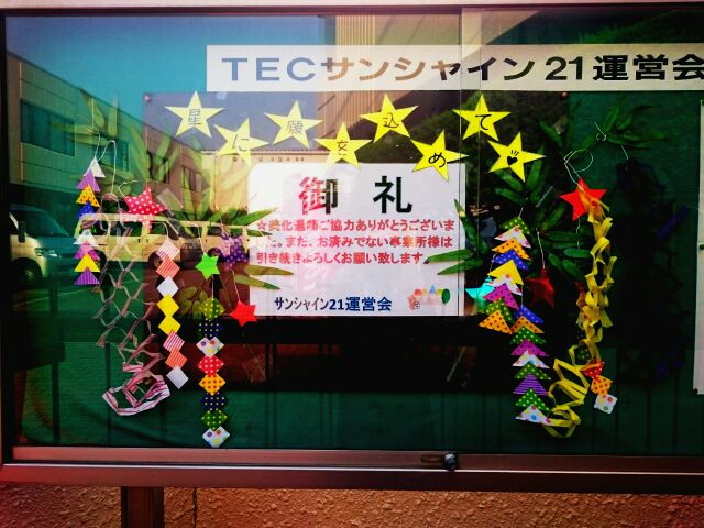 皆様に短冊をお配りして竹に飾って頂いてます。