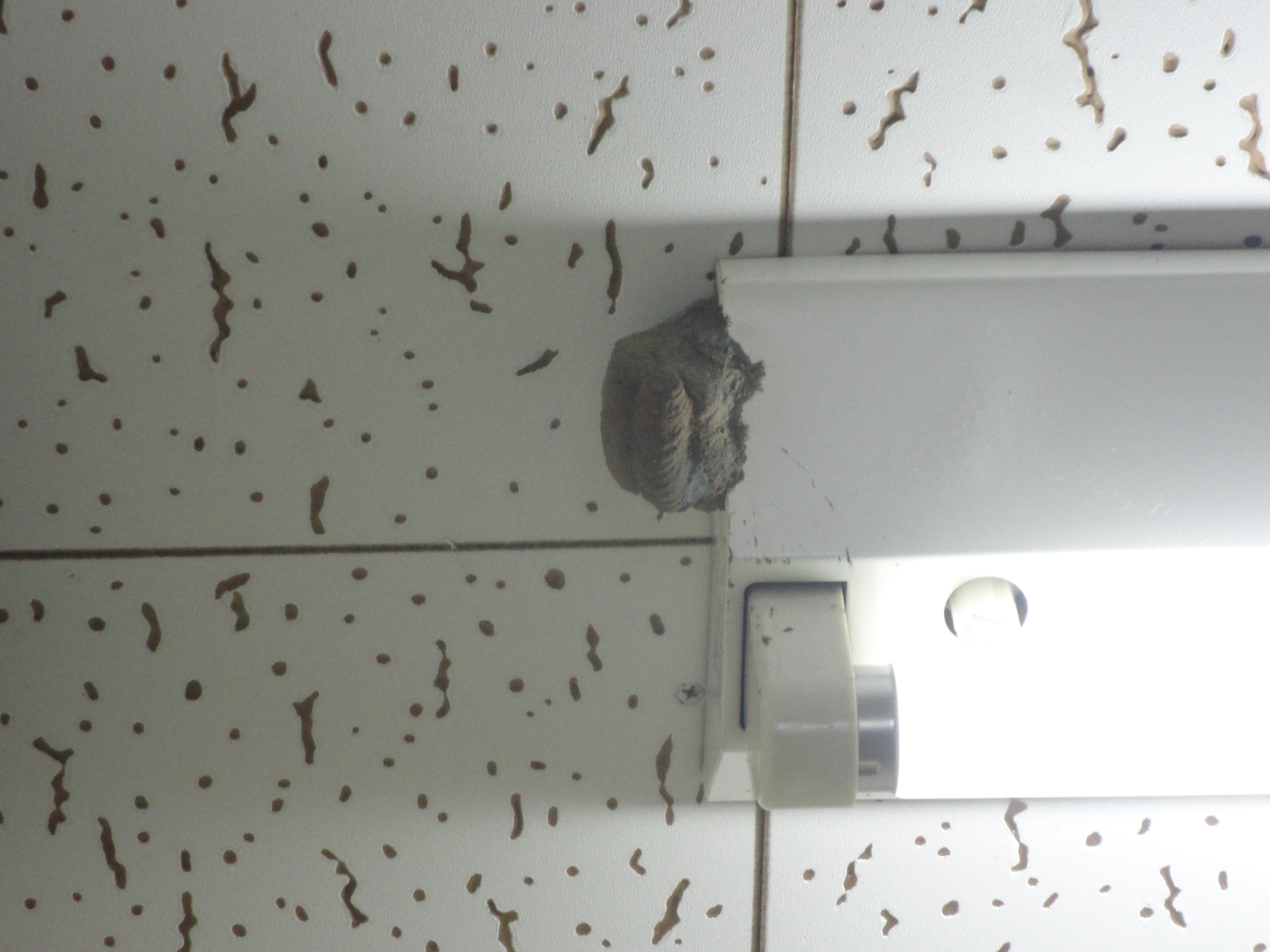 なんだ!と思い、頭上を見上げると、電気の横にくっついている蜂の巣を発見。