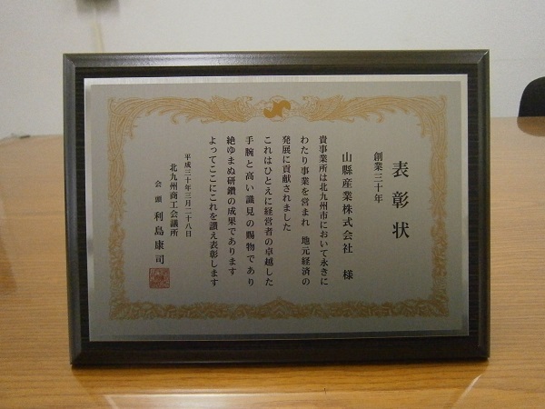 弊社は「30年」として表彰を受けました。