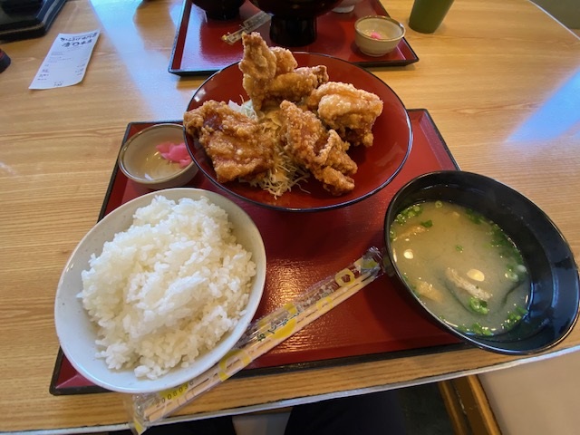 から揚げ定食 から揚げ4個入り(醤油味2個、塩味2個)を食べましたが、揚げたてでとても美味しかったです。