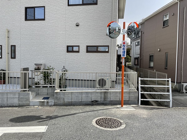 弊社テナントの前の道路ですが、信号が無い交差点になっており、通行時に見えずらい場所があったのです。