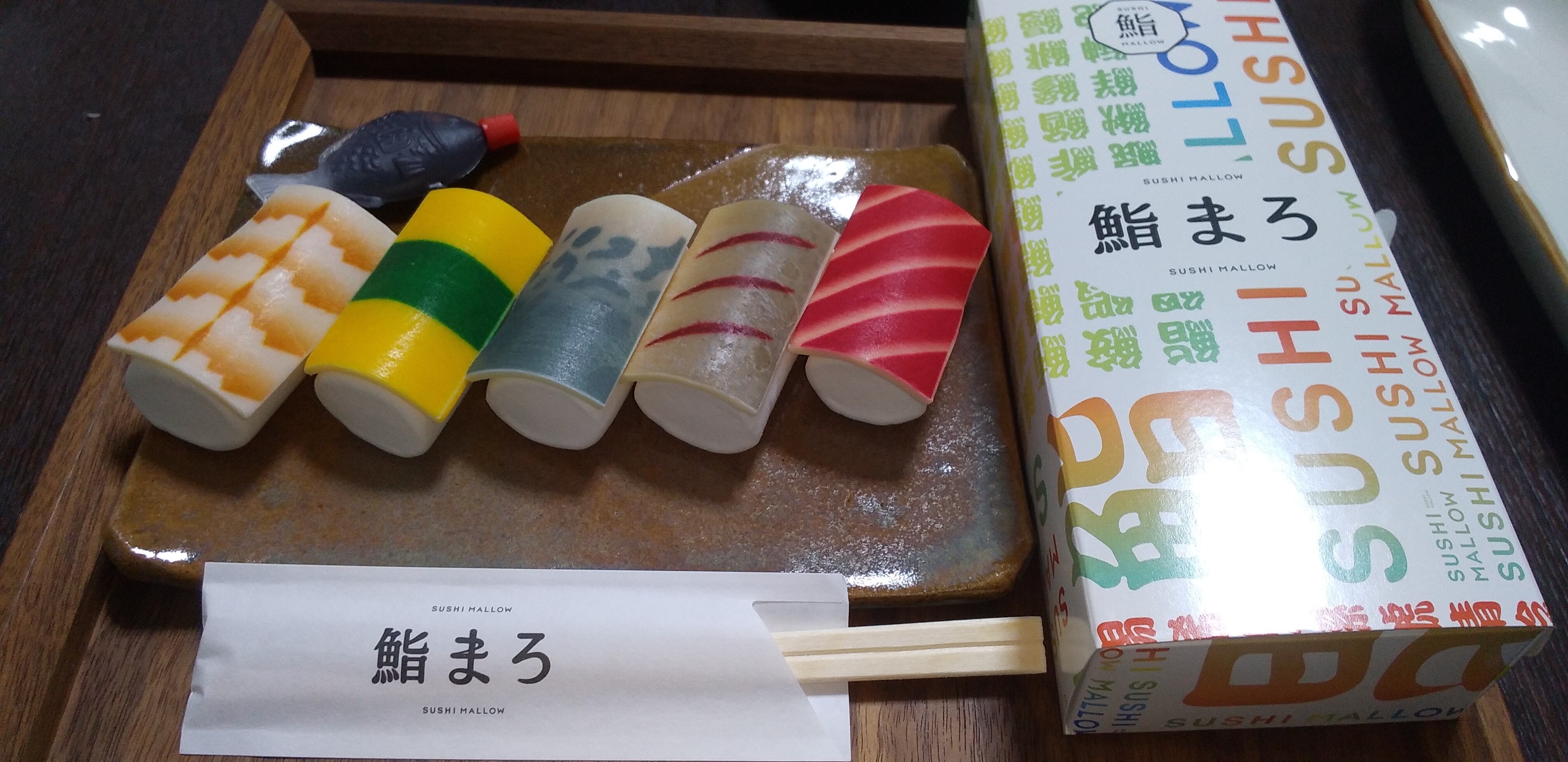 しゃりはマシュマロ、ネタはホワイトチョコレートを着色して出来ています。流石若者、発想が面白いですよね。寿司と言えば北九州は「江戸前」ならぬ「小倉前」の寿司が有名ですよね。高価な小倉前寿司は無理でもこの鮨まろなら気軽に食せますね(笑)