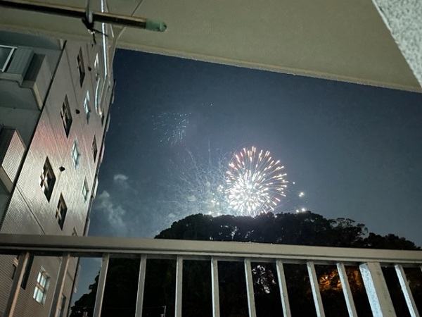 突然の花火でビックリしましたが、今年の夏は花火を見に行くことが出来なかったので、特等席で最高でした!!!!まさか自宅の部屋から座って見れるとは思っていなかったのですごく贅沢な気持ちと心が癒されました♪
