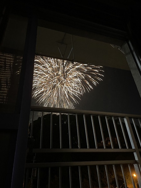 窓の外を見てみると、なんと花火が上がっているではありませんか( ゚Д゚)