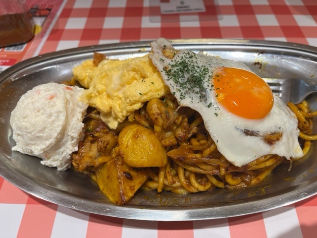 私はトッピングで贅沢に目玉焼き、チーズオムレツ、ポテトサラダを追加しました( ´∀` )